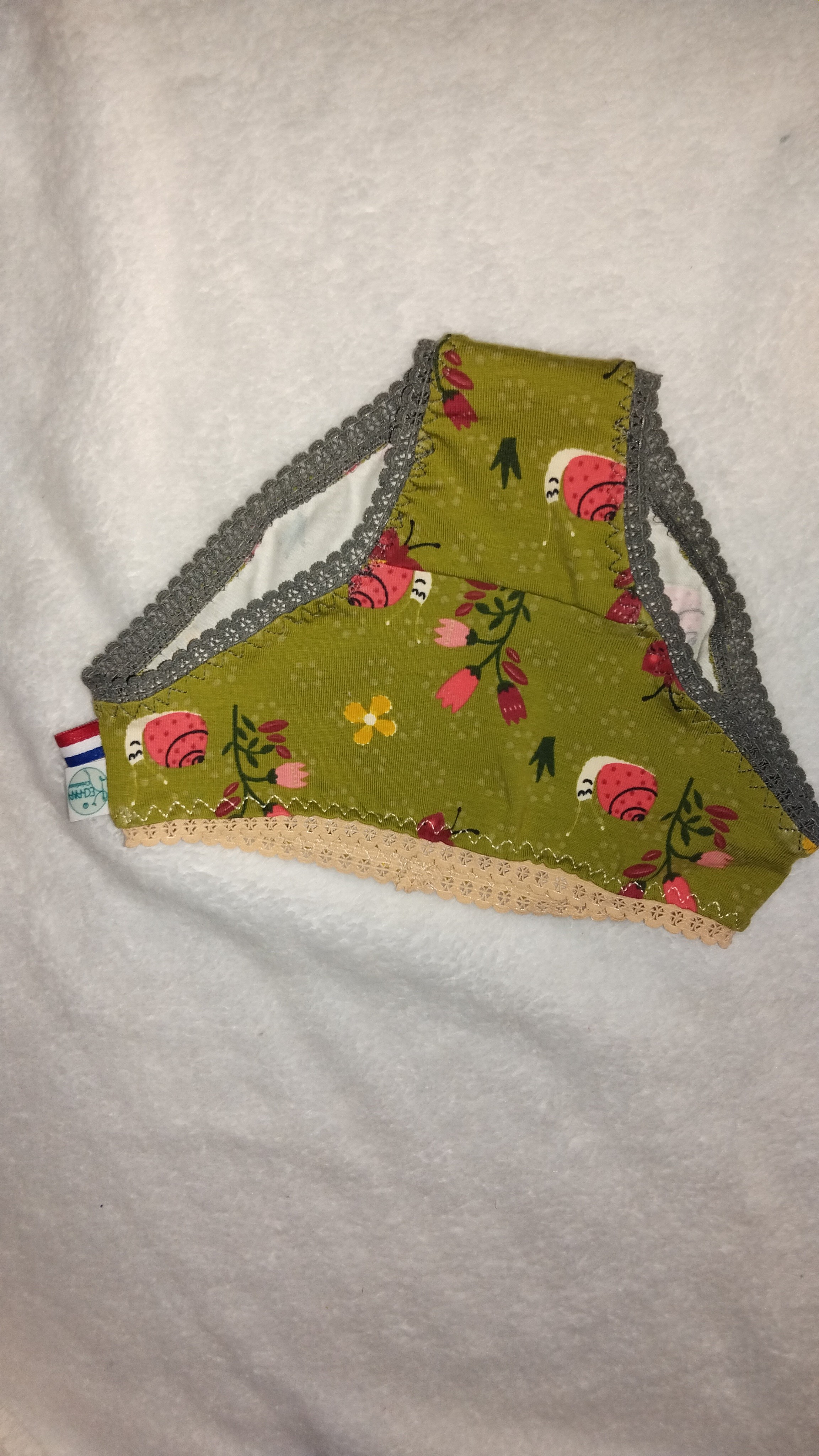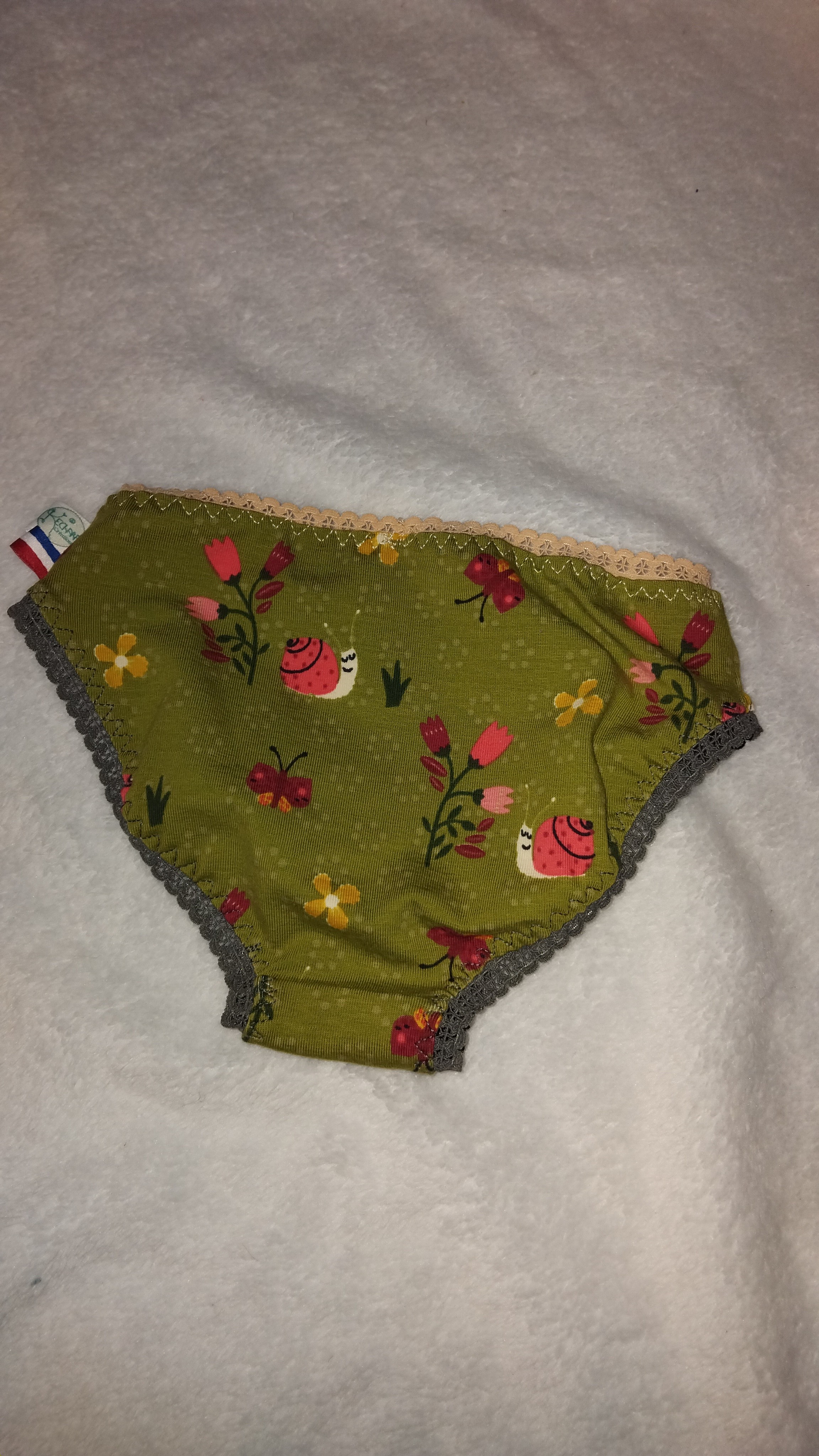 Culottes filles taille 3 ans cousues dans des chutes de découpe, fin de rouleaux, rouleaux avec défaut partiels. Jersey (composition coton + élasthanne) certifié sans substances toxiques pour l'homme ou l'environnement.