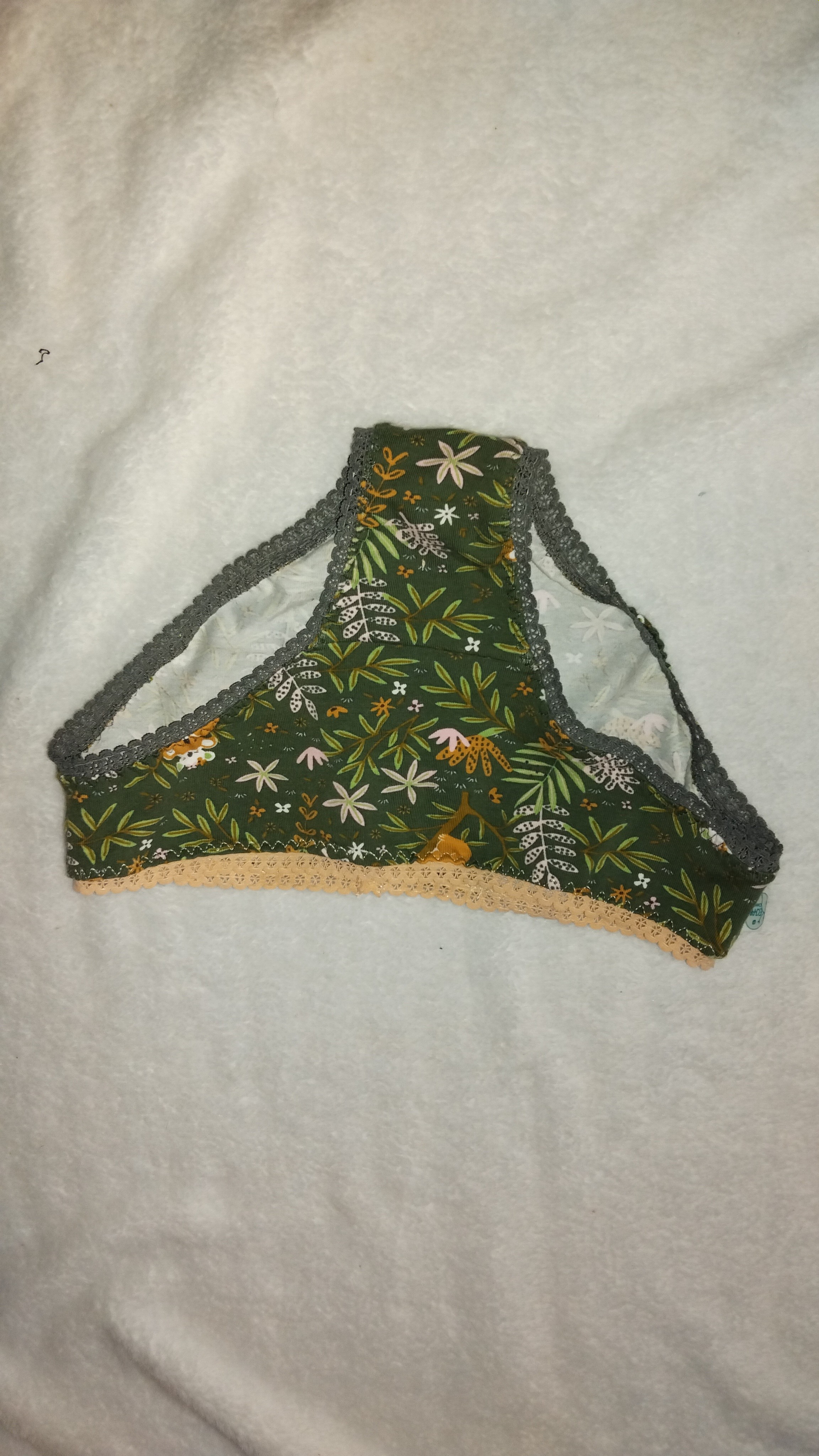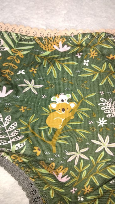 Cousu d'après un patron dessiné par Etoffe malicieuse. Modèle sous licence, confortable et bien couvrant.