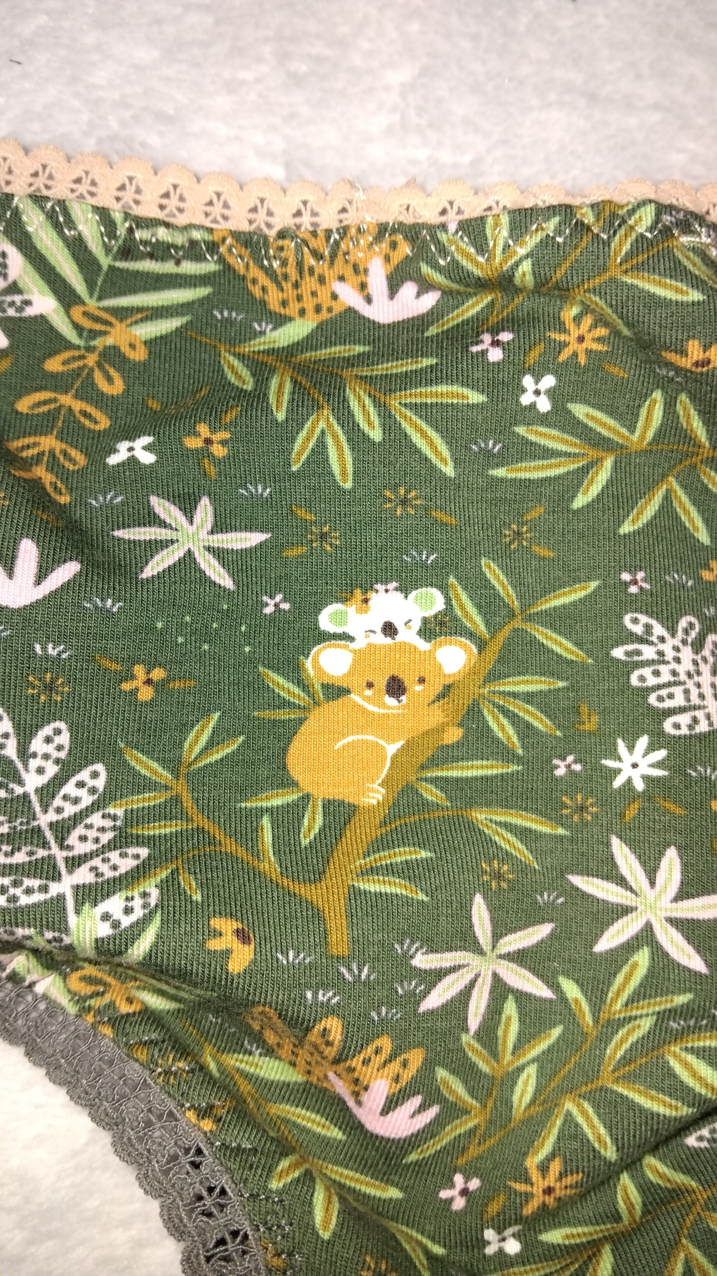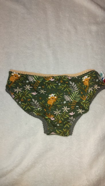Culottes filles taille 10 ans, cousues dans des chutes de découpe de jersey revalorisées.