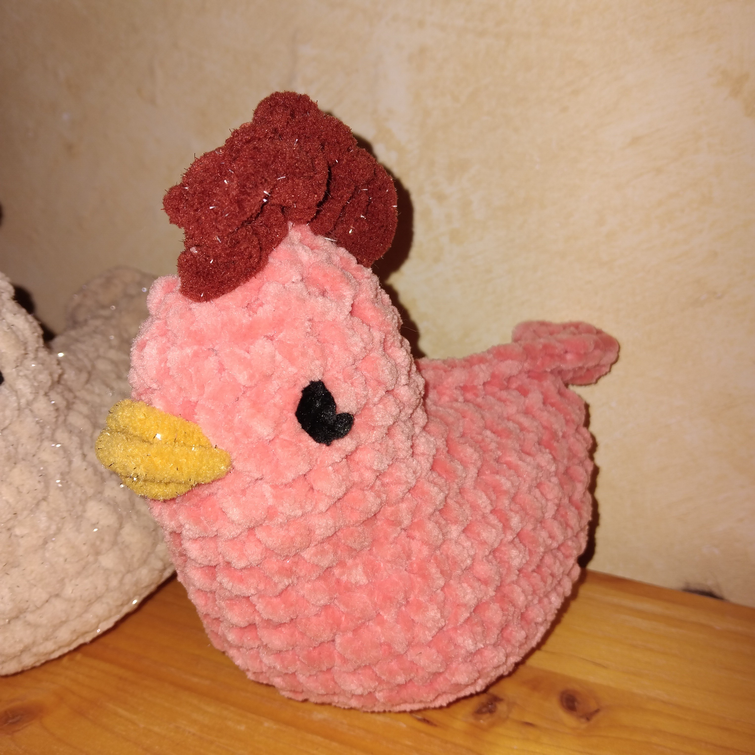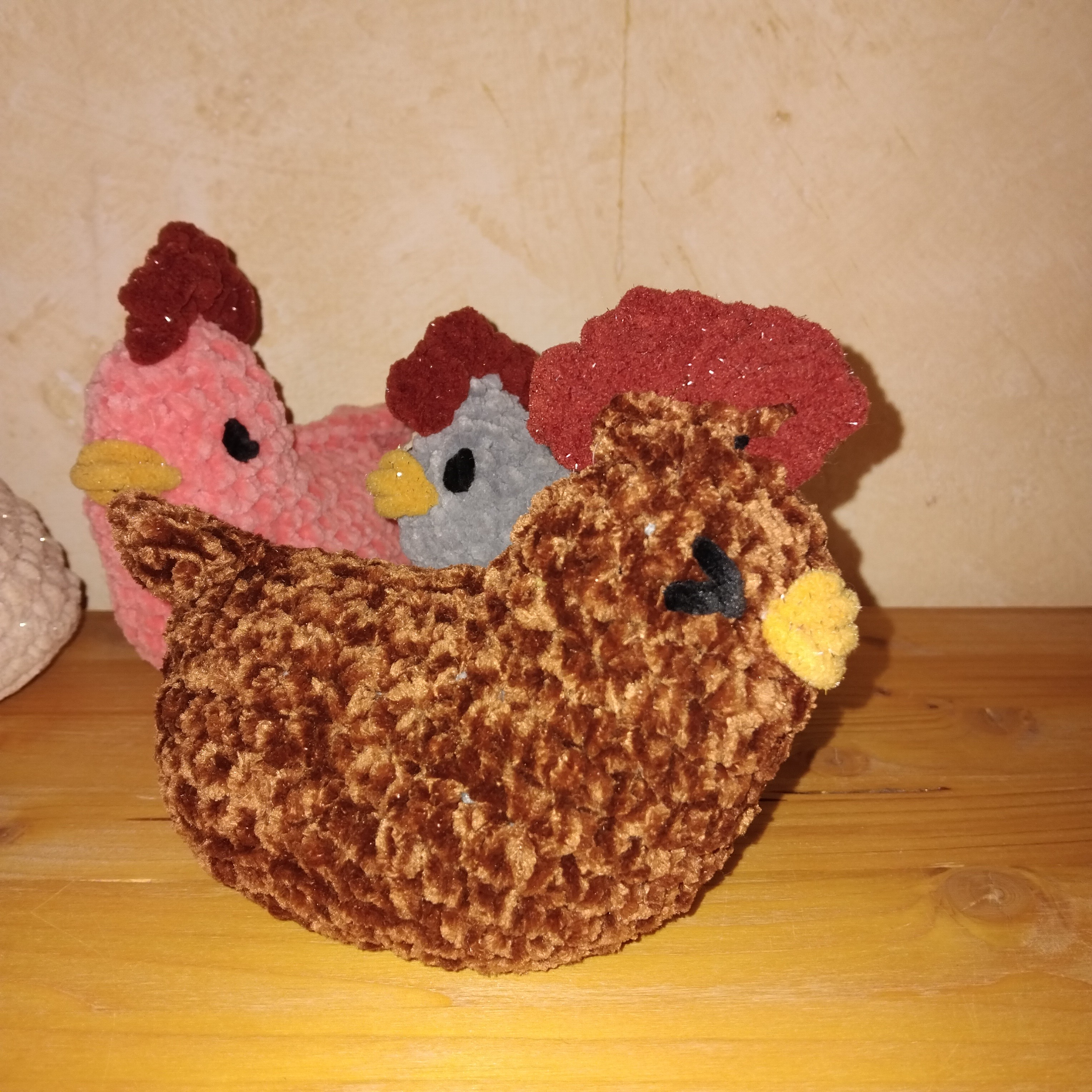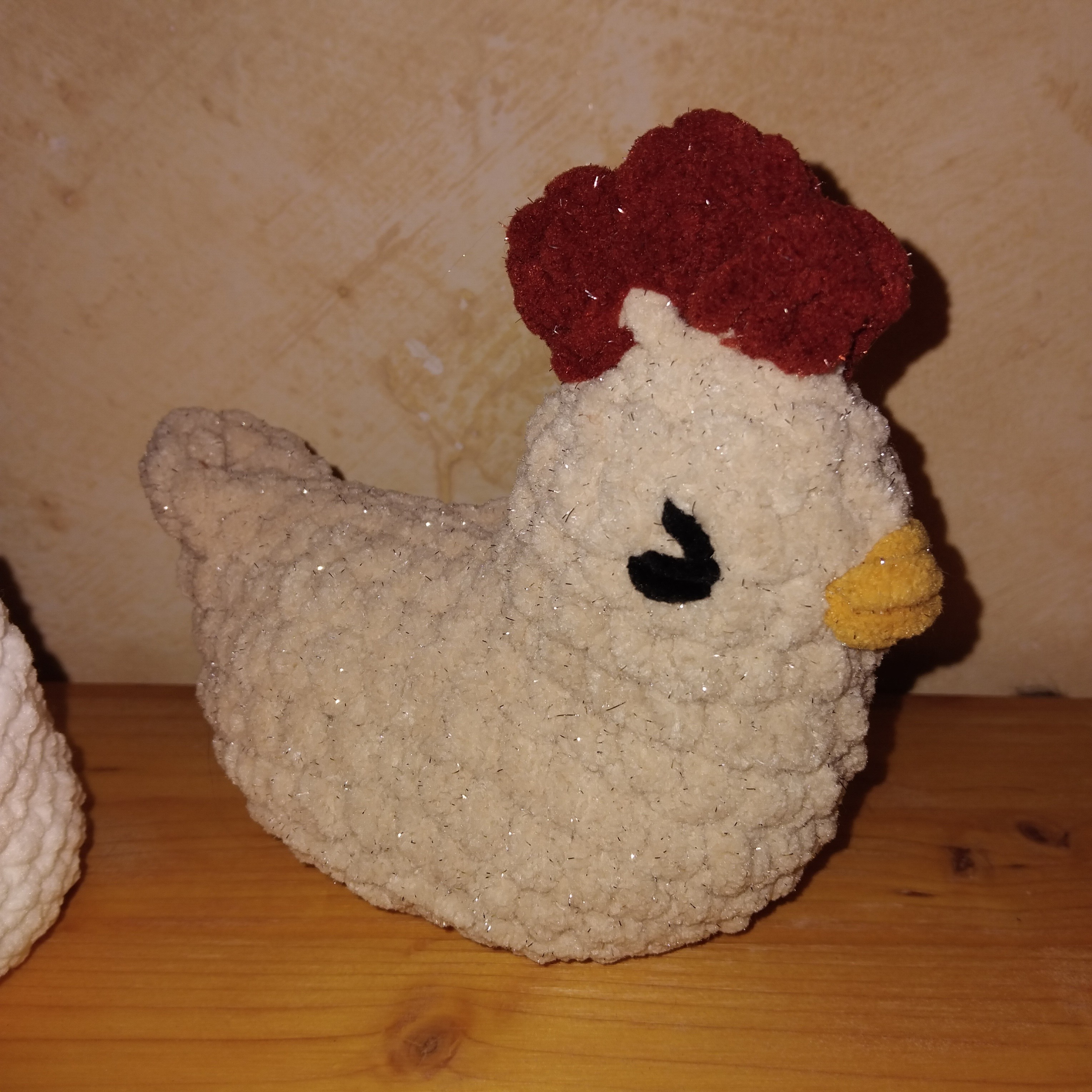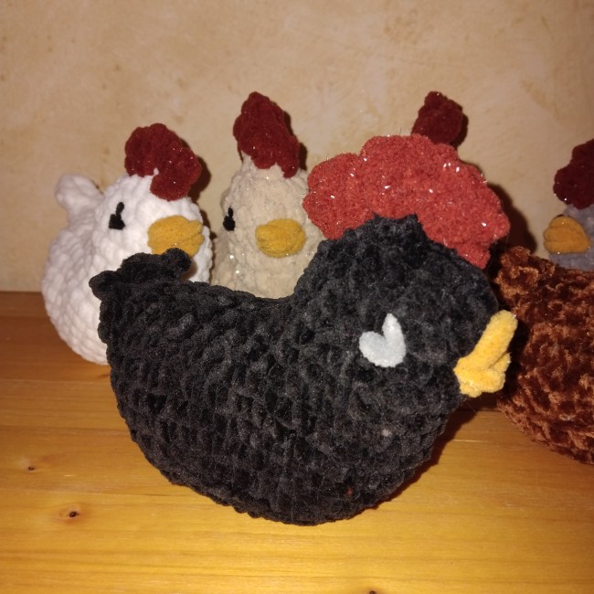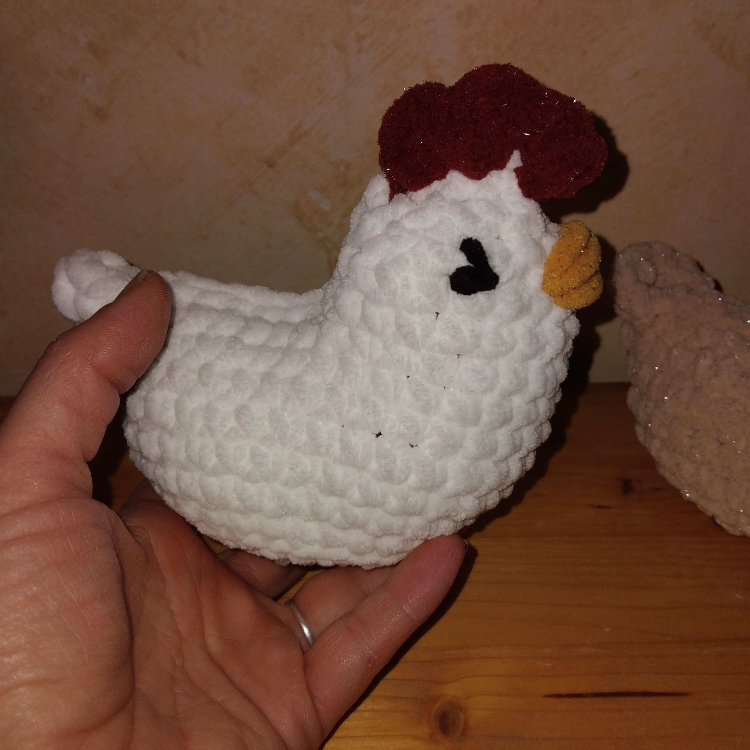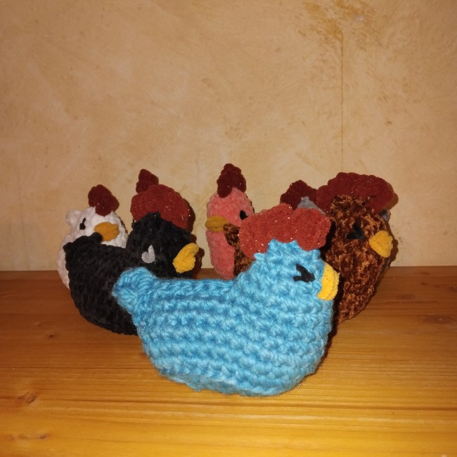 Poule pour animer des contes, pour des tapis narratifs. Couleur selon votre choix et mon stock de laines adaptées. Yeux brodés à la main, rembourrage ouatine de seconde main