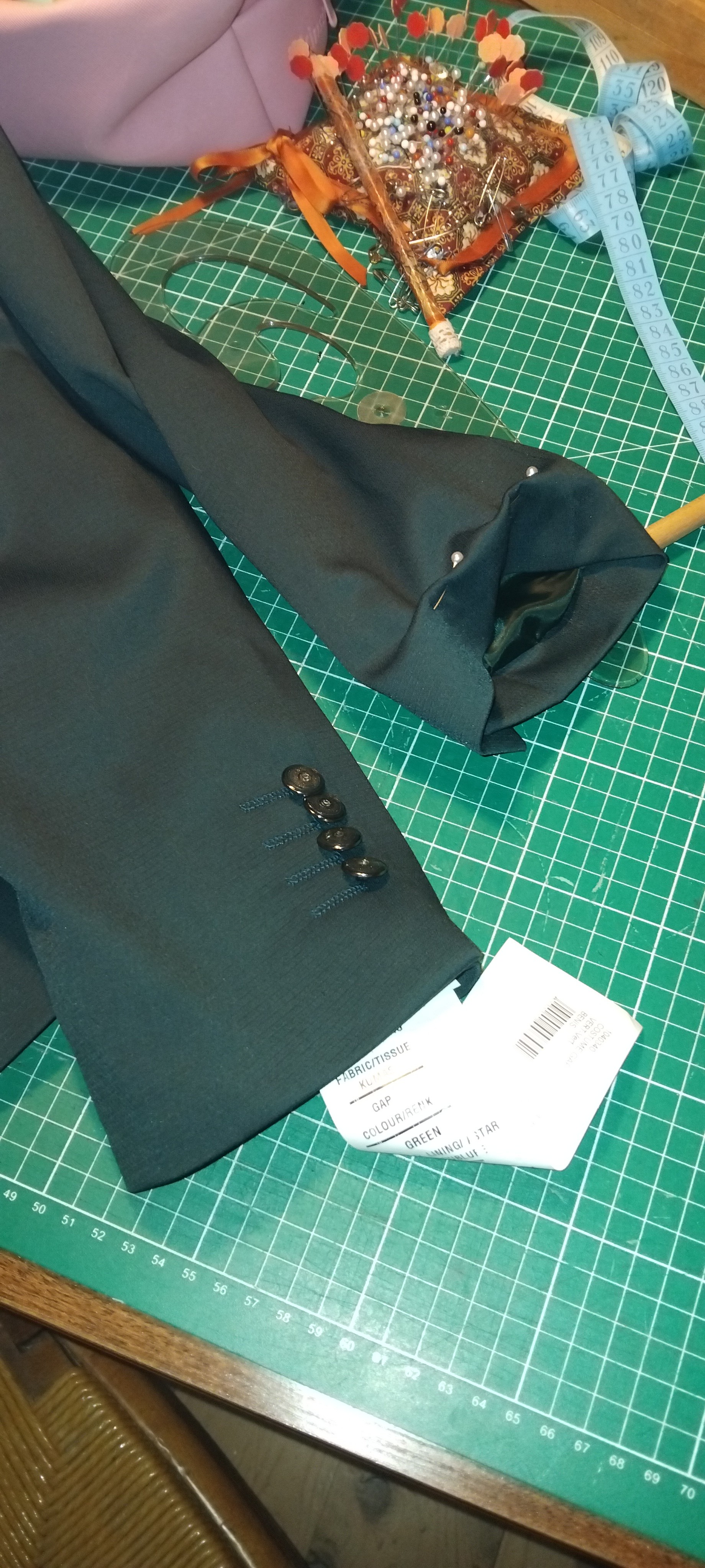 Surpression si besoin des fausses boutonnières et modification de l'emplacement des boutons selon vos choix à l'atelier